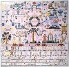 A splendid sampler combining the alphabets and numerous motifs from Hamburg as seen in the coat of arms of the city, two lions flanking a gate. Northern German samplers frequently contain many religious motifs. Certain Bible stories such as the crucifixion, Jacob wresting with the angel, Joshua and Caleb, Adam and Eve, Jesus with the Samaritan woman at the well, to name a few, were believed to be very instructional by the Lutheran church. Seen on this sampler also is the Lamb of God, Justice with her sword and scales, and numerous animals and flowers. From the Textile Museum in St. Gallen, Switzerland, accession no.20069. Ours is the only museum authorized reproduction available.