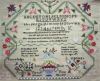 Society. The geometric band along the bottom, the verses, and the basket all match motifs on her teacher's sampler. Stitches used are cross, cross over one, and algerian eye. The original measures 17 1/2" x 17" and was stitched on an uneven weave linen. We would like to thank Sue Studebaker,