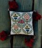 Britain from 1200 - 1750", there are a couple pin pillows shown with matching sweet bags. Stitches used on our pin pillow are tent, double running, Roman, rice Hungarian, herringbone, detached buttonhole and trellis. The kit comes with everything needed to complete the pin pillow including the wool roving.