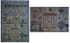 This gorgeous sampler is originally from Scotland. The image of the large house with a man in doorway belongs to a style of sampler depicting similar houses with birds on the chimney. The pansy band and the wonderful tree are also found on these samplers as are the peacock and the rabbit. Elizabeth's family were loyal to the king of England as the cartouche containing the Scottish thistle states "Long Live the King" while the other cartouche contains the Tudor English Rose. Adam and Eve have been stitched as well as a lovely female and numerous insects. The eight pointed star with stars at each tip is also found on Friesian samplers.