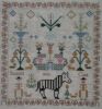 This is the second sampler made by Isabella, her first one was worked in 1835. A well balanced small spot sampler with a queen in her garden. This motif is almost identical to those found on Dutch samplers where it is referred to as the “Maid of Holland, a freedom symbol after the