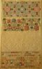 one, which we see rather frequently on 17th century band samplers. It is the variety of filling stitches that she used that make this such a wonderful sampler. The middle section is worked with linen thread and has a bit of cut work in. The bottom section has several styles of alphabets and the inscription reads, “ My father hitherto has done his best to make me a worke woman about the rest, Margeet Lucun, 1681, beang ten years old come July the first", she had to squeeze the last two letters in along the side edge.