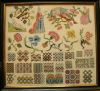 A fabulous spot sampler made in the 18th century in Germany, the original sampler was worked in wool but ours is worked with silk. The top two thirds of the sampler is worked entirely in tent or continental tent stitch, over one thread, creating realistic flowers, birds and women in gorgeous gowns. The shading in these motifs is lovely.