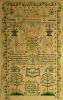 Worked in silk on linen, the design is broken up into small spaces of different sizes that showcase varying stitches and designs learned at school. Figuring most prominently are two trees growing from hillocks. Birds and animals appear both in the branches and on the ground. Stylized baskets (and one vase) of flowers and fruits appear elsewhere, as do letters of the alphabet rendered in several different formats. Slightly below center is this poem: