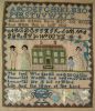 Stylistically Hannah's sampler retains elements found on earlier Newport samplers; the vase with her name inside of it, the house, the layered format with people and the flowers along the bottom although on earlier samplers these were found in the entire border.