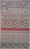 Aquilina's wonderful band sampler is of Spanish origin, worked mainly in red and greens. The samplers appears quite delicate due to the fact that some of the satin stitch bands have spaces between the stitches.