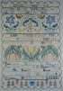 Perthene (1749–1795) was 11 years, eight months, and ten days old when she finished her sampler on September 30, 1761. It belongs to a wonderful group of Newport, Rhode Island, samplers, which provides the first recognizable regional style in colonial America. The design elements in Perthene’s sampler include bands of large arcaded flowers, flanked by two verses: the first which compares the loss of her parents with the loss of Christ and the second which reflects the pride of her needlework.