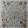 Elizabeth' sampler is from Norfolk, UK, and they are known for the linked octagon band, pine trees, deer and stepped lozenges. The samplers date from 1740’s into the 1840’s, a hundred year span. There were a number of them made that are very similar in appearance. For more information on these samplers see Imitation and Improvement, The Norfolk Sampler Tradition by Joanne Martin Lukacher. Elizabeth’s sampler is pictured on p.149.