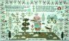 trees, birds and butterflies. A typical verse of the period deals with death and the promises of afterlife. A Honeysuckle border surrounds everything. Stitches used in this sampler are cross-stitch, French knots, cross over one and satin stitch.