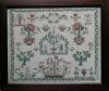 One of a pair of samplers, see as 40. SV's samplers are probably from the province of Zeeland, in the Netherlands. She stitched her well balanced and charming sampler at the age of 12. Her parents initials, AV and EV are included as well as a couple having tea amd a wondeful ship with crew. Conservation mounted and framed, size includes the frame.