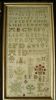 IFD her sampler is from the south west corner of Friesland. The earlier ones from this region are long, vertically. It contains a spinning monkey and some wonderful illuminated lettering and geometric motifs.Conservation mounted and framed.